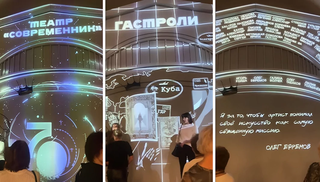 К 70-летию театра в фойе была создана масштабная проекционная инсталляция. Шесть проекторов AB-D90ZL, работающих в сшивке, с помощью 3D-видеомэппинга оживляют декорацию фасада театра, рассказывая зрителям о его истории, основателях и легендарных постановках.
