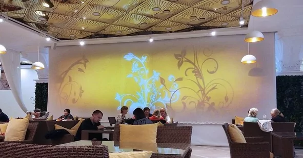 Развитие проекционных технологий и появление проекторов, способных работать на протяжении десятка лет без замены лампы, допускающих крепление под любым углом, привели к развитию нового направления – проекционного дизайна интерьеров. Теперь рестораны и кафе могут создавать уникальное оформление помещений, быстро менять его в зависимости от мероприятий, времени года, темы проводимых арендных мероприятий (юбилей, свадьба, новогодний корпоратив). Учитывать особенности аудитории – детский праздник, деловое мероприятие, презентация компании или продукта. Для интерьерной проекции не нужен сложный сплошной визуальный ряд, достаточно легких анимационных набросков на свободных пространствах.