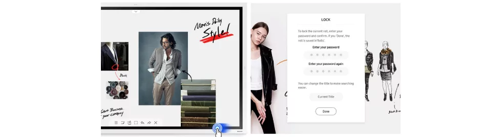 Samsung Flip имеет до 20 рабочих листов и вы можете перелистывать их когда это необходимо. Кроме того, флип-чарт оснащен системой защиты конфиденциальной информации о совещаниях, так что она никогда не попадет в чужие руки. Надежная система блокировки позволяет пользователям скрывать контент от посторонних.