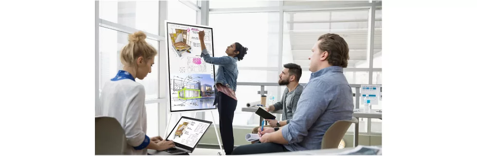 Поддержка сенсорного управления позволяет пользователям синхронизировать контент своих мобильных устройств с экраном флип-чарта и управлять им в реальном времени. Любые изменения на экране флип-чарта зеркально отображаются на подключенных устройствах и наоборот, что важно для совместного взаимодействия участников совещания.