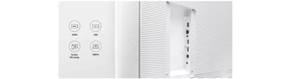 Пользователям предоставляются широкие возможности для подключения флип-чарта к разным устройствам и источникам информации. Поддержка портов USB, HDMI, функции NFC и возможность "расшаривания" (sharing) содержимого экрана облегчает интерактивный режим коммуникации с участниками совещания и обмена записями и заметками. Кроме того, флип-чарт предлагает опционный лоток (tray) для расширения коммуникационных возможностей устройства.