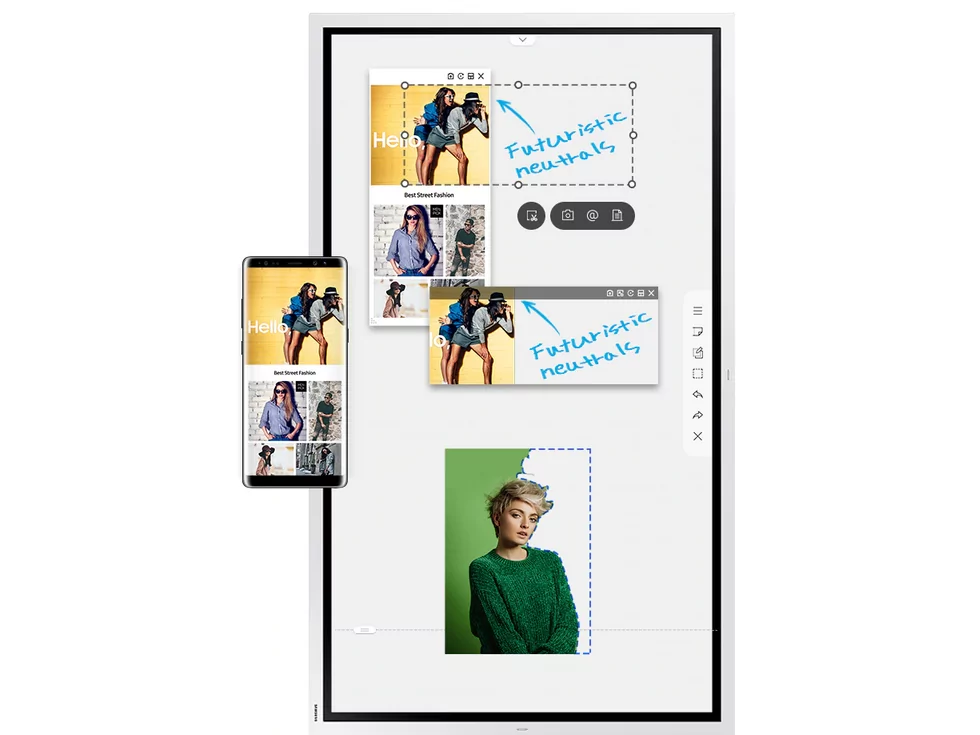 Многофункциональность использования. С помощью Samsung Flip пользователи могут быстро и легко выбрать, переместить, обрезать, "захватить" и отредактировать любое изображение. Кликнув по кнопке, каждое изображение может быть объединено с рабочим листом, после чего эти изображения можно редактировать или удалять.