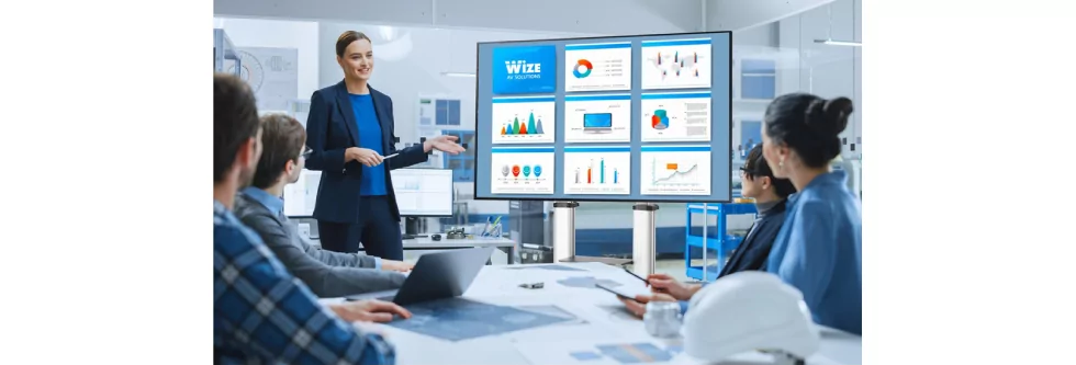 В каждой из таких зон должно присутствовать средство визуализации, в качестве которого, как правило, выступают профессиональные интерактивные дисплеи. Для их инсталляции превосходным решением являются мобильные стойки Wize. Практичные, стильные и эргономичные они позволяют достичь надежной установки дисплея в нужной локации, за счет дополнительных настроек добиться комфортных условий просмотра для всех участников встречи или семинара и при этом обеспечивают удобное размещение дополнительных аксессуаров для спикера.