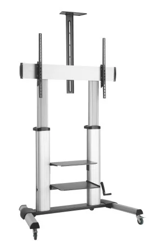 Wize M86 - мобильная стойка для самых больших широкоформатных и интерактивных дисплеев диагональю до 90’’. Максимальный размер VESA составляет 800x600 мм, а нагрузка может доходить до 150 кг, что делает стойку Wize M86 одной из самых надежных на рынке. Продуманный дизайн позволяет выдерживать большую нагрузку и сохранять устойчивость при использовании интерактивного дисплея, при этом оставляя мобильность при передвижении. За счет нижней полки центр тяжести стойки смещен вниз, что обеспечивает хорошую устойчивость, а также удобное перемещении тяжелых дисплеев. Стойка Wize M86 поставляется с двумя полками в комплекте – для дополнительного оборудования и аксессуаров.ена 3 полками - одной сверху для видеокамеры и двумя снизу для различных аксессуаров для презентаций. Все полки регулируются по высоте и выдерживают нагрузку до 5 кг.