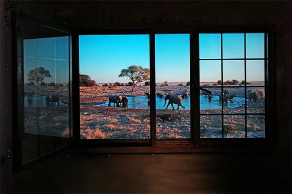 Если для проекций в общественных зонах, холлах с высокой освещенностью требуются инсталляционные проекторы со световым потоком от 15 тысяч люмен, то в небольших номерах без окон с задачей справятся проекторы стандартных и экономичных серий. Избежать теней и попадания луча проектора в глаза помогут ультракороткофокусные проекторы или дисплеи Open Frame. Настроить включение и выключение проекционного окна можно с помощью системы управления и датчика присутствия. С помощью системы управления гость сможет сам переключить проекционное окно в режим кинотеатра или выбрать пейзаж за окном.