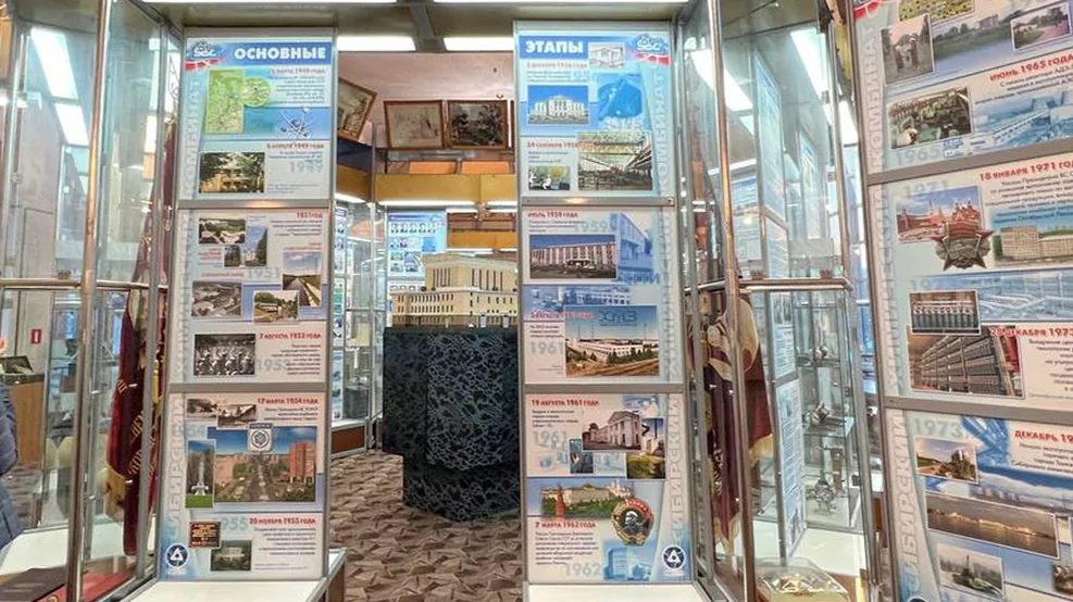 Прошлое комбината представлено в инсталляциях «Рабочий кабинет руководителя», «Ленты времени событий атомной промышленности и выдающихся ученых», а также предметным рядом, который логично демонстрировать в стеклянных витринах.