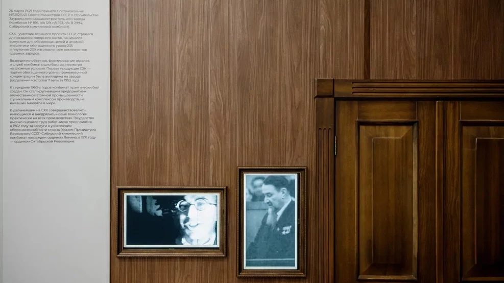 Специалисты музея придумали оригинальную фотозону, обозначившую особое отношение к двум великим людям в атомной промышленности – Е.П. Славскому, министру среднего машиностроения СССР (так в официальных документах называлось ведомство, отвечающее за развитие атомной промышленности), и И.В. Курчатову организатору и руководителю работ по атомной науке и технике в СССР.