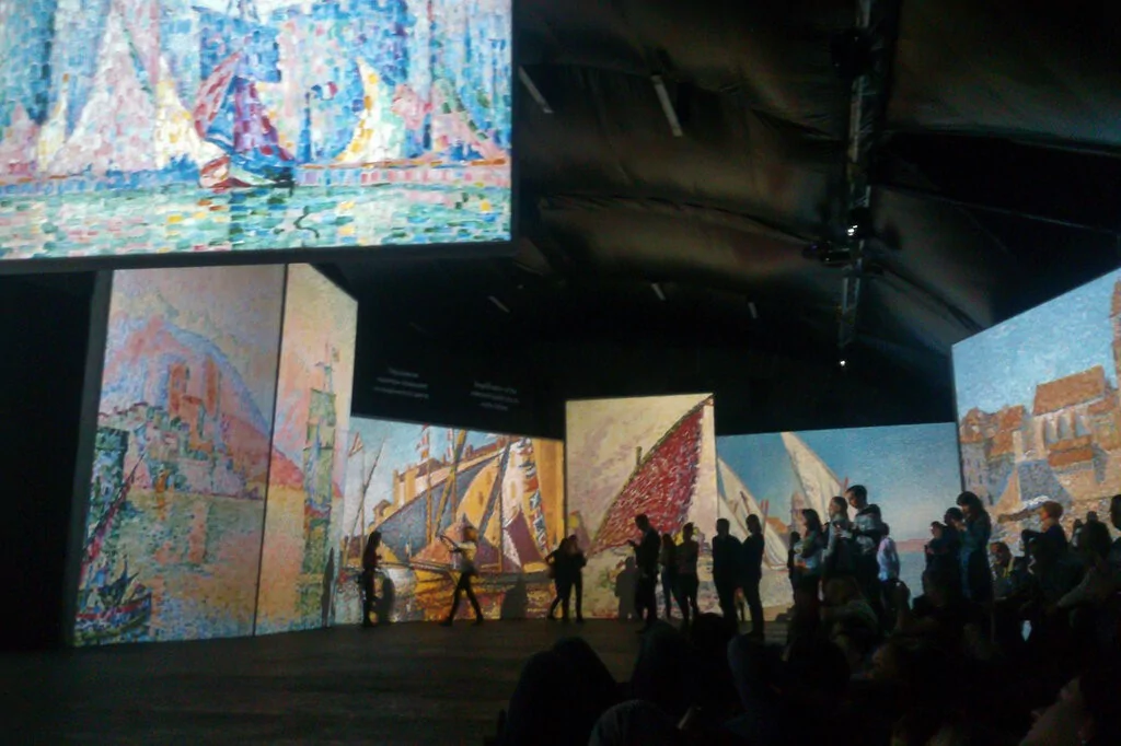 Проецирование полотен известных художников на большие поверхности первыми использовали образовательные и развлекательные площадки. Жанр мультимедийной выставки оказался достаточно востребованным во всем мире, и в России появились клоны таких выставок. Художественные музеи скептически отнеслись к такому типу экспонирования, они увидели в используемых приемах нарушение целостности произведений мастеров: искаженная цветопередача, увлечение анимированием и озвучиванием персонажей и ландшафтов, увеличение фрагментов полотен, идущее в разрез с пропорциями и размерами картин. Чаще всего организаторы мультимедийных выставок обращались к творчеству импрессионистов. А ведь их работы создавались с особой техникой нанесения мазков, где предметы не имеют контуров. Смотреть на такие полотна рекомендуется с нескольких шагов, тогда фактура картины оживает, становится объемной, «дышит». Да и в любом жанре художник создает полотно определенного размера не случайно, это тоже часть художественного замысла, будь то «Явление Христа народу» или маленький натюрморт. Изучением картины с лупой занимаются реставраторы, культурологи, а мультимедийные выставки предлагают это делать всем посетителям.