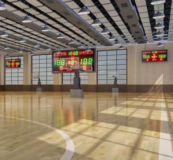 Светодиодные табло или мониторы для выведения результатов матча крепить высоко, на специальные крепления или фермы. Аналогично размещаются и акустические системы.
