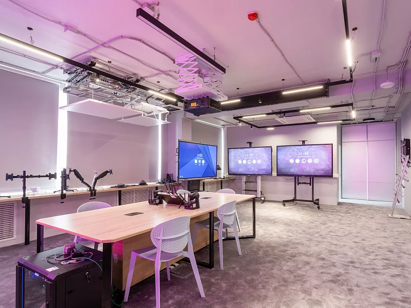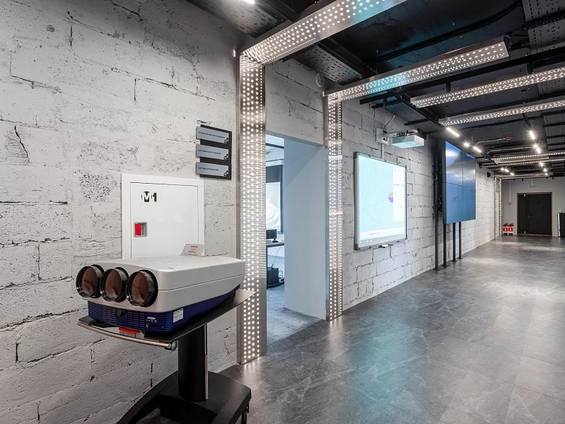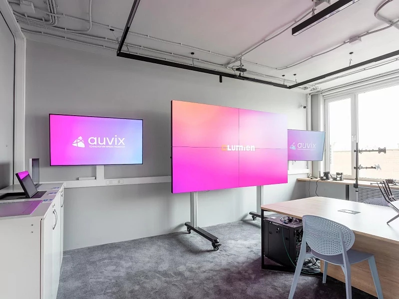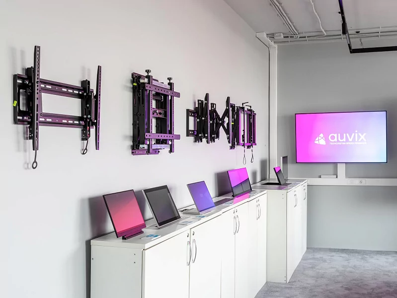 Одно из самых крупномасштабных экспозиционных пространств на российском рынке. На площади более 500 м² размещены продукты и решения из товарного портфеля AUVIX, которые востребованы в различных отраслях от образования и культуры до транспорта, торговых центров и промышленных предприятий.