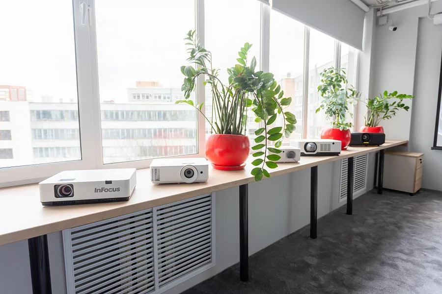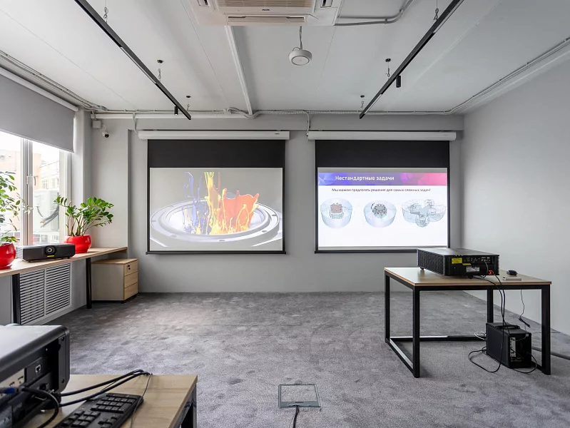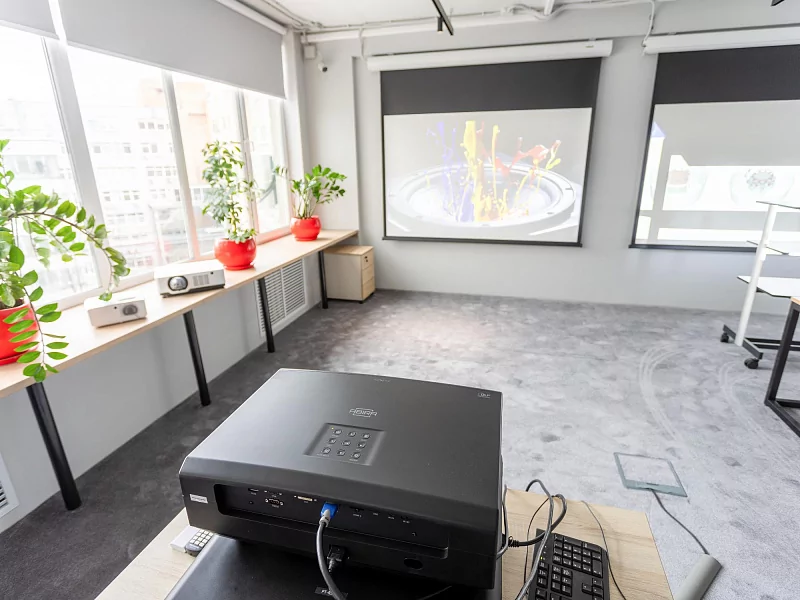 Экспозиция включает проекторы разных производителей: Abira, Barco, InFocus, LG, NextTouch, Optoma, Panasonic. Можно ознакомиться с каждой моделью и сделать оптимальный выбор как для домашнего кинотеатра, офиса или учебного класса, так и для масштабных инсталляций.