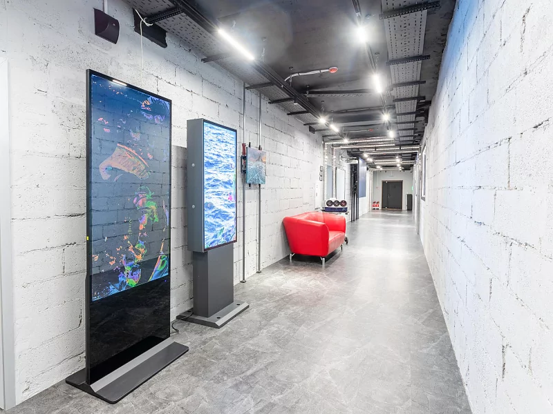 В этом зале представлены проекционные экраны и широкий модельный ряд профессиональных дисплеев LUMIEN, выдвижные мониторы, лючки, кабели, рэковые шкафы и крепления Wize, системы записи и трансляции IQVideo, а также интерактивные панели и интерактивные комплексы российского производства.