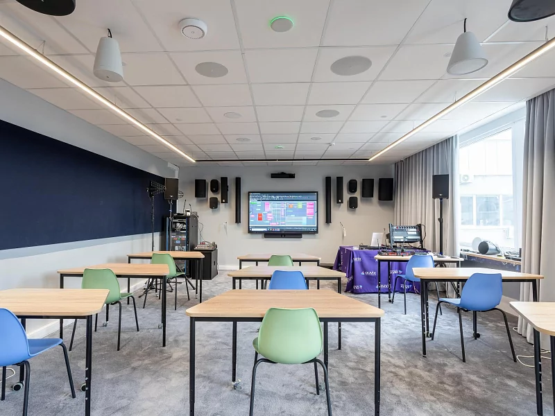 В этом зале посетитель сможет познакомиться с нюансами работы акустического оборудования от захвата звука и его обработки − до воспроизведения. Акустическое оформление зала обеспечивает оптимальные условия для прослушивания. Представлены комплекты радиосистем в разных ценовых сегментах: от бюджетного Axelvox до ITC и топового Intrend, микрофонные массивы Biamp Parlé, устройства обработки звукового сигнала Intrend и Biamp, акустические системы DS Proaudio, Intrend и Biamp, наушники Axelvox.