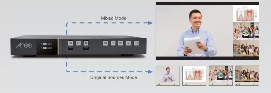 AREC LS-860 / LS-860N – новая медиастанция «все в одном» от компании ADENA. С помощью 4 входов HDMI и каналов потоковой передачи IP, медиастанция AREC LS-860 / LS-860N поддерживает до 4 видеоисточников Full HD 1080p: обеспечивает захват, микширование, запись, потоковую передачу и резервное копирование видео с разрешением до 1080p60 одновременно с 4 источников в режиме реального времени. Источники могут использоваться в любом сочетании: до 4-х HDMI-источников, до 4-х IP-источников или их различные комбинации (2+2, 1+3). Кроме того, можно выбрать гибкий режим работы: использовать один смешанный источник и 4 индивидуальных. Модель LS-860N поддерживает технологию NDI-HX.