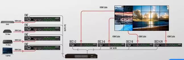 Энкодеры и декодеры iSwitch 200D Tx/Rx позволяют заменить локальные решения HDBaseT(точка-точка), создать виртуальную матрицу в различных зданиях и передавать мультимедиа между помещениями, подключать USB камеры и клавиатуру-мышь, собрать распределенные источники мультимедиа на полиэкране.