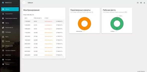 Booco для бронирования рабочих мест – это веб-портал, авторизовавшись в котором, сотрудник получает доступ к картам офиса с доступными рабочими местами и может выбрать и забронировать себе нужное место для работы в офисе.