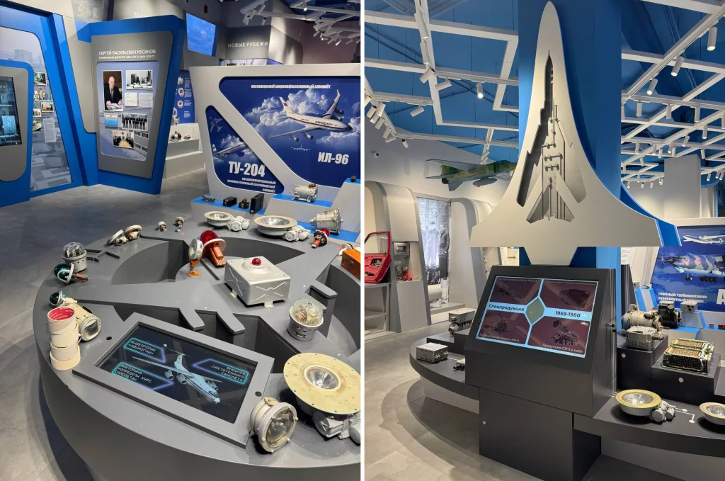 Встраиваемые интерактивные модели удачно вписаны в музейные витрины и помогают узнать больше о продукции завода.