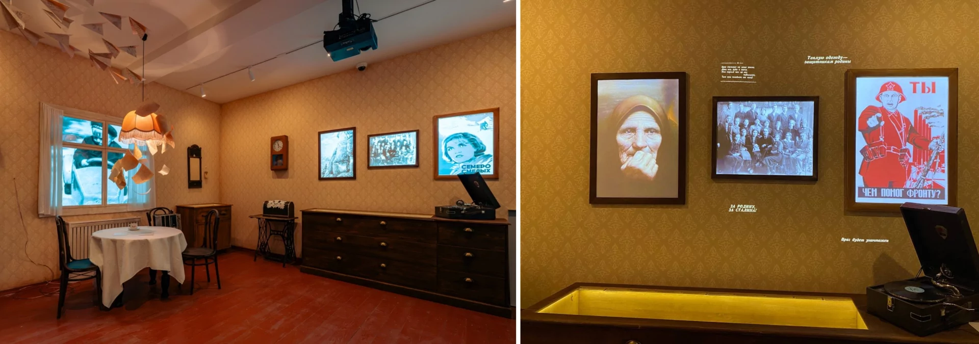 Тщательно подобранный звуковой сценарий для каждого раздела усиливает эмоциональное воздействие и создает эффект присутствия. «Советская квартира» начинается с тиканья часов в последние минуты спокойствия перед страшной вестью. Внезапно оно сменяется метрономом и голосом Молотова, объявляющим о нападении фашистских войск. Этот переход от тишины к историческому сообщению создает сильный драматический эффект.