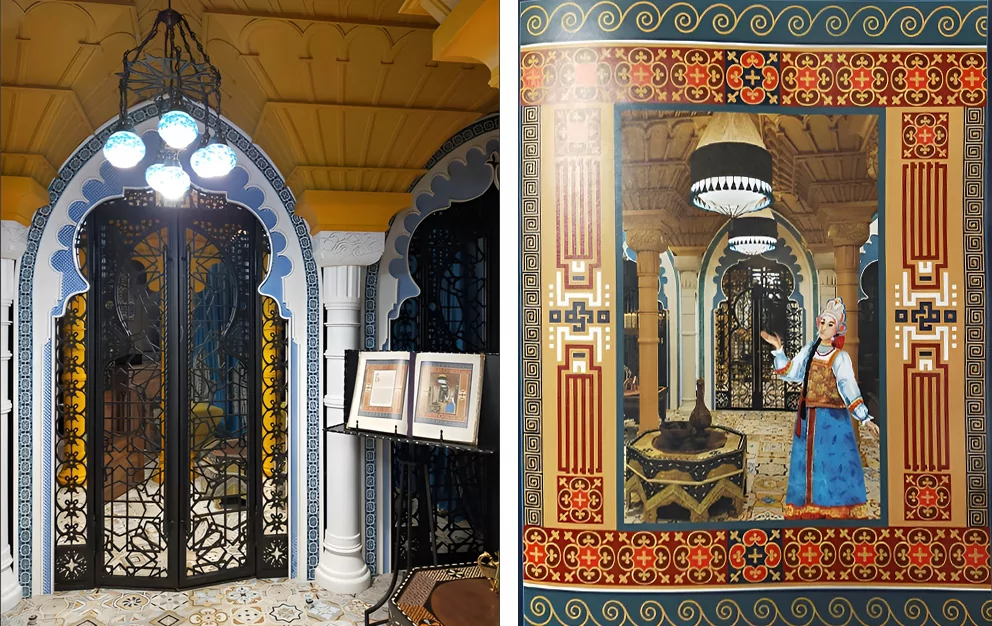 Здесь гости музея совершают настоящее путешествие по страницам сказки: из русской купеческой избы батюшки они переходят в зал шумного рынка заморских стран, потом попадают в таинственные залы «Замка Чудища».