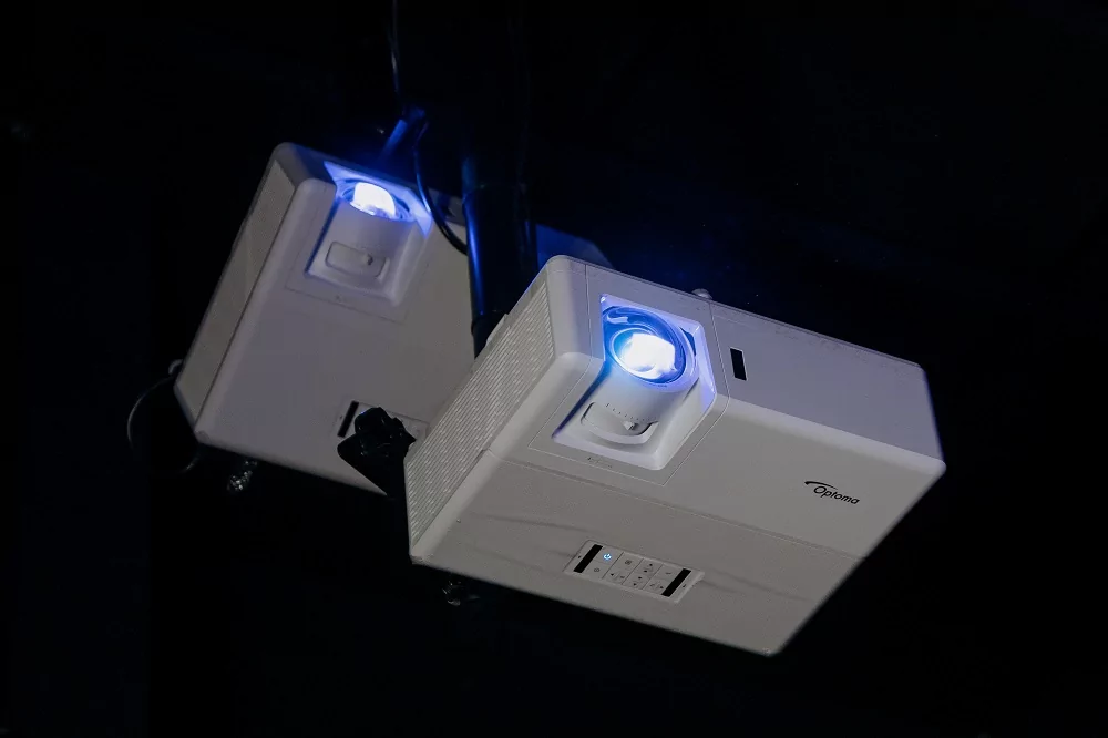 Интерактивная поверхность создается с помощью обратной проекции с установленных под столом проекторов на нестандартное стекло. Ограниченное пространство под столом не позволило использовать стандартные крепления для проекторов, поэтому  для их фиксации пришлось воспользоваться кастомными решениями.