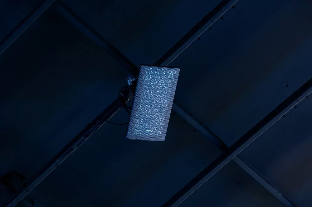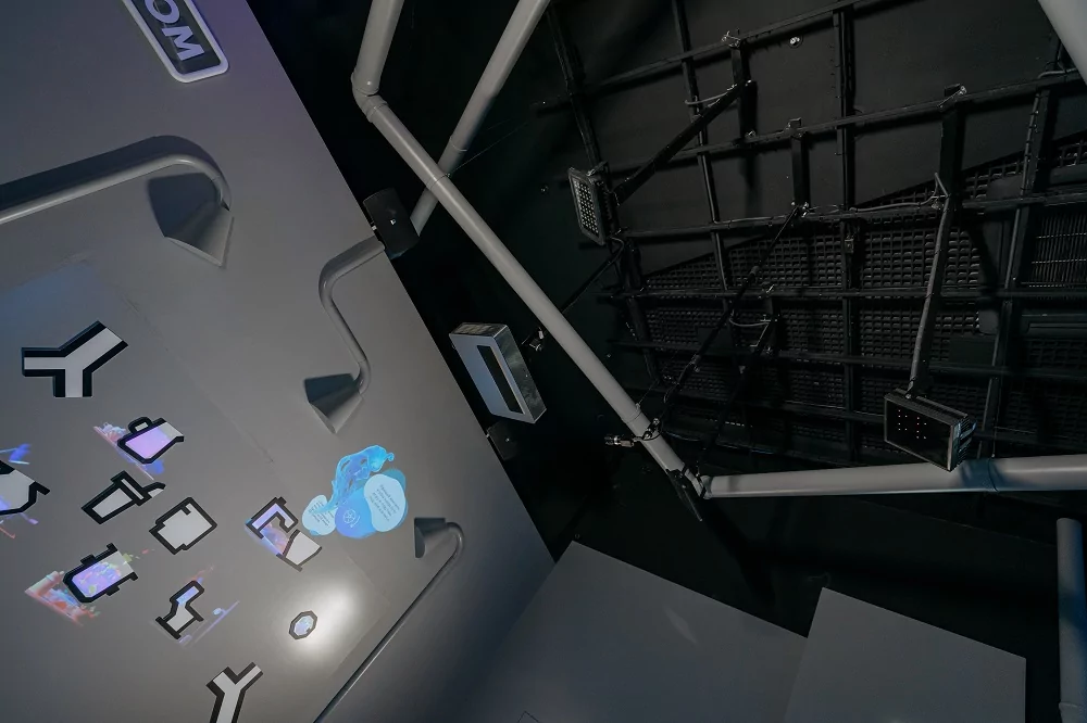 УКФ-проектор светит на окрашенную проекционной краской стену. Для аудиосопровождения используются направленные динамики Audfly с узким лучом расхождения звука – так, чтобы не мешать посетителям соседних инсталляциях.