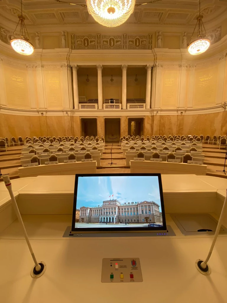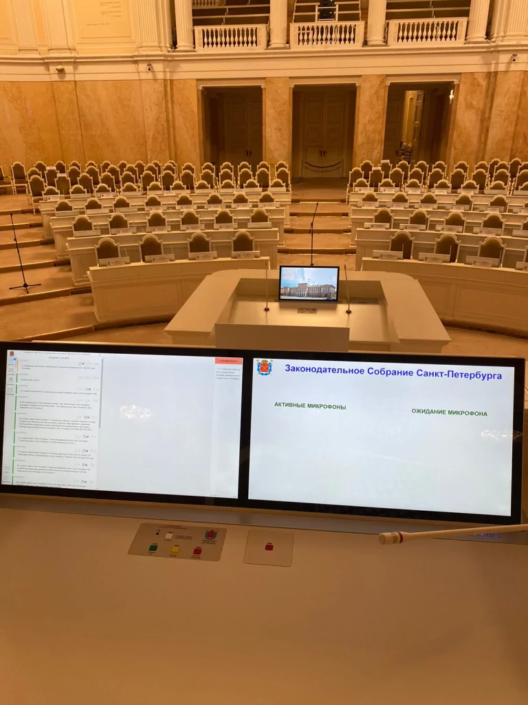 Не так давно решения Wize были использованы для оснащения представительного органа государственной власти − Законодательного собрания Санкт-Петербурга. Эта государственная административная структура предъявляет самые высокие требования к техническому оснащению cвоего конференц-зала для того, чтобы обеспечить безупречный уровень проведения мероприятий правительственного уровня.