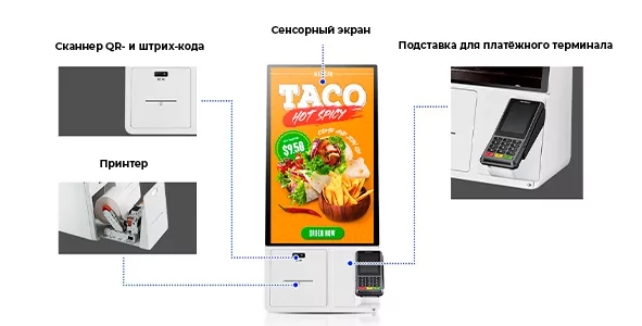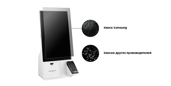 Интерактивный киоск самообслуживания Samsung KM24C-3 − компактное решение «Все в одном» для повышения качества клиентского сервиса. Решение позволяет клиенту самостоятельно выбрать и оплатить товар, не вовлекая в процесс сотрудников магазина или кафе. Использование такого киоска позволяет торговым точкам оптимизировать расходы на персонал, значительно снизить время ожидания покупателей в очереди и повысить прибыль своего бизнеса.