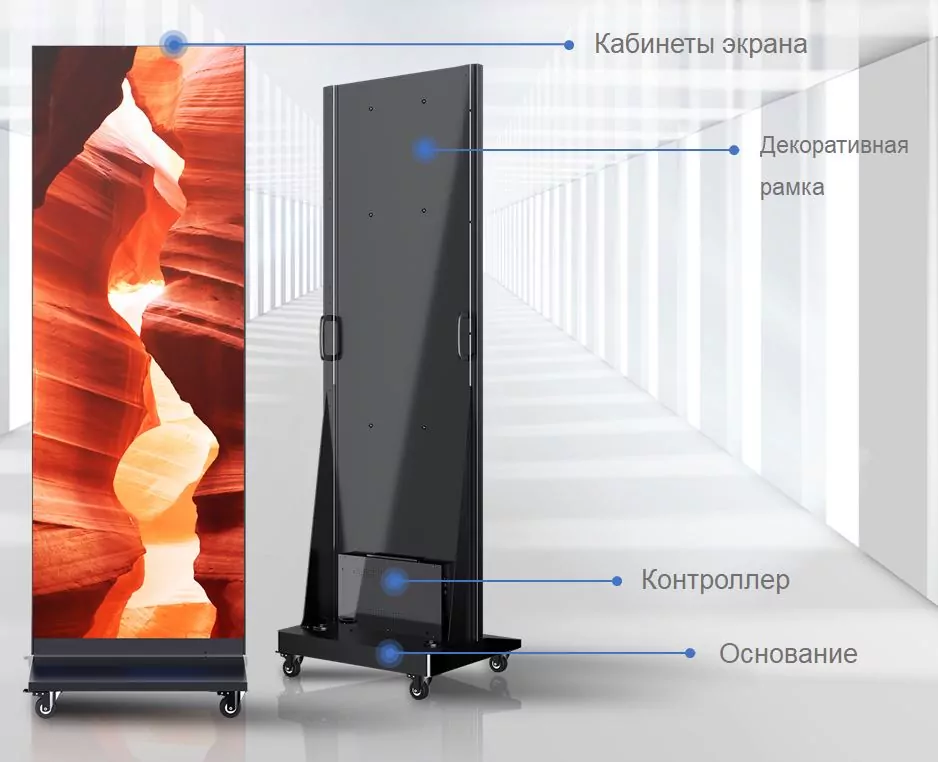 Цифровой постер – современная альтернатива традиционным печатным плакатам. Он представляет собой мобильную эргономичную конструкцию, которую можно размещать практически в любом месте и отобразить самую разную информацию: рекламный контент, объявления о распродаже, расписание мероприятия, режим работы, сводку погоды и многое другое. Если в качестве носителя для предоставления контента целевой аудитории используется передовое высокотехнологичное решение, то эффективность воздействия информации на аудиторию возрастает в разы.