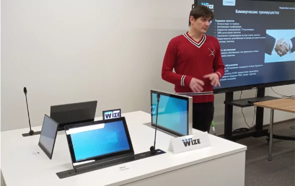 В офисе AUVIX установлен демонстрационный стол с 4 моделями выдвижных мониторов Wize: WR-15GS Touch, WR-15GV Touch, WR-22B2 Touch и WR-15BRC Touch, а в ближайшее время добавится инсталляция еще с 2 моделями: WR-15CL Touch и WR-17FL Touch. Презентация сопровождается демонстрацией оборудования в работе, а после теоретической части можно протестировать выдвижные мониторы WIze самостоятельно.
