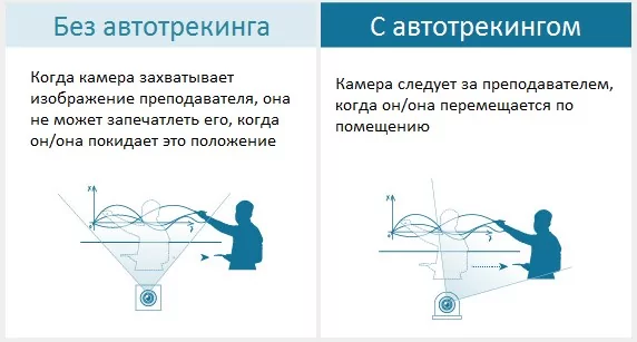 Встроенная в камеру функция автоматического слежения позволяет запечатлеть движущегося докладчика. Работа камеры следует за динамиком без необходимости детального управления оператором, что позволяет осуществлять реалистичную видеосъемку в любое время.