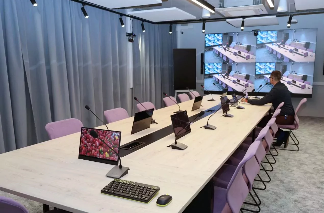 «Аляска» оборудована всем необходимым для проведения как очных, так и удалённых встреч. Для дистанционных коммуникаций между сотрудниками и внешними партнерами использован ВКС-терминал от компании SberDevices SDTM-001. Он с легкостью позволяет взаимодействовать в формате 4K, как в облачном ПО SaluteJazz с подключением до 100 участников сразу в базе, так и по привычным протоколам ВКС-подключения SIP, H.323. Базовая поддержка подключения к серверам Vinteo расширяет возможность взаимодействия с государственными заказчиками/клиентами.