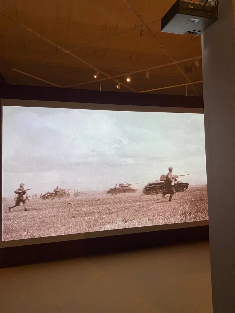 На встроенных в экспозиционные перегородки дисплеях демонстрируется военная хроника.