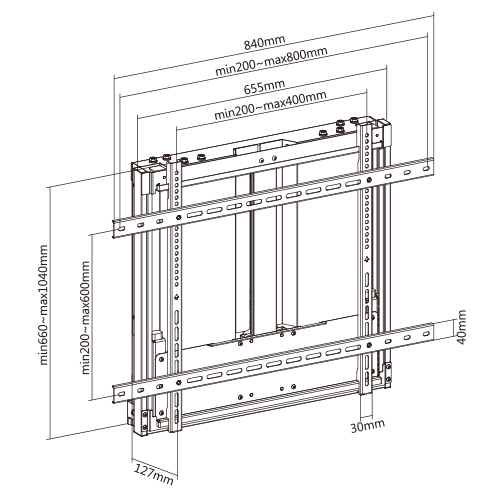 Фиксированное настенное крепление с возможностью плавной регулировки высоты для дисплеев и интерактивных панелей 70"-90" весом 60-90 кг