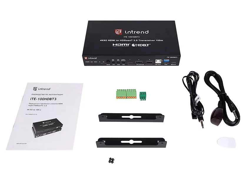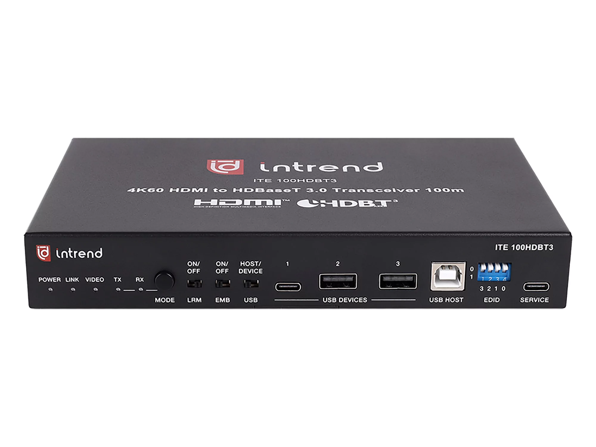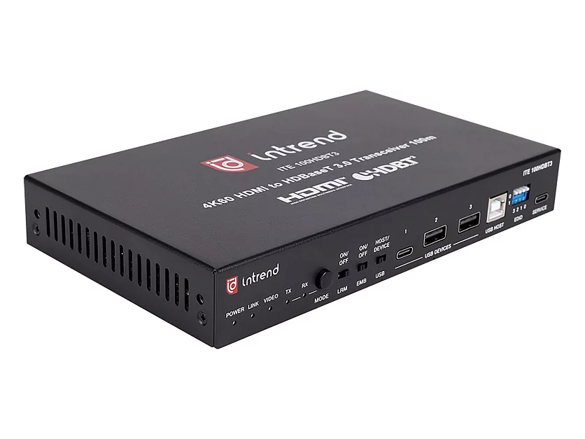 Передатчик/приёмник ITE-100HDBT3 предназначен для трансляции сигнала HDMI и управляющих сигналов Ethernet (1 Гбит/с), USB 2.0, RS-232 и ИК на значительные расстояния с использованием унифицированного интерфейса HDBaseT® версии 3.0. Функция прибора (приёмник или передатчик) выбирается при его установке на месте эксплуатации.
