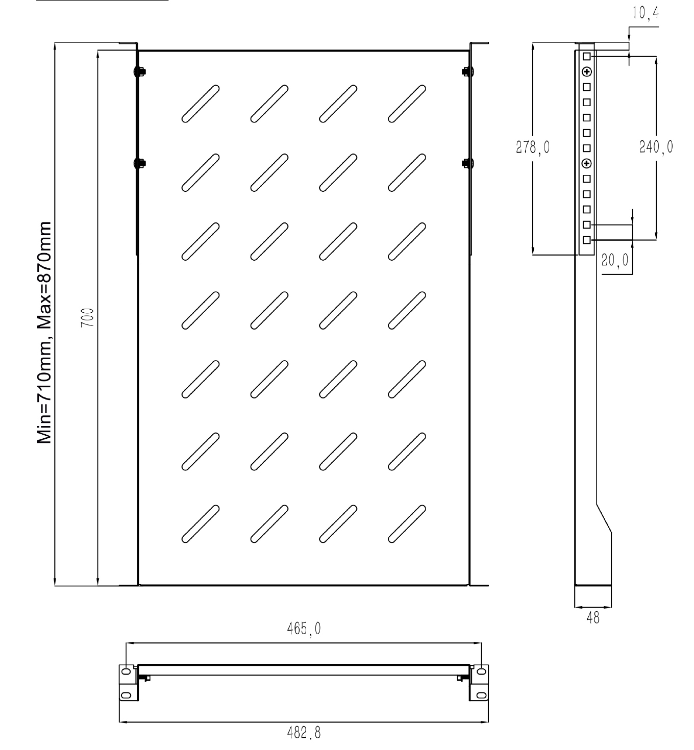 Полка стационарная WSH1U100 с боковым креплением для установки в рэковый шкаф 19", высота 1U, глубина 1000 мм, перфорированная.