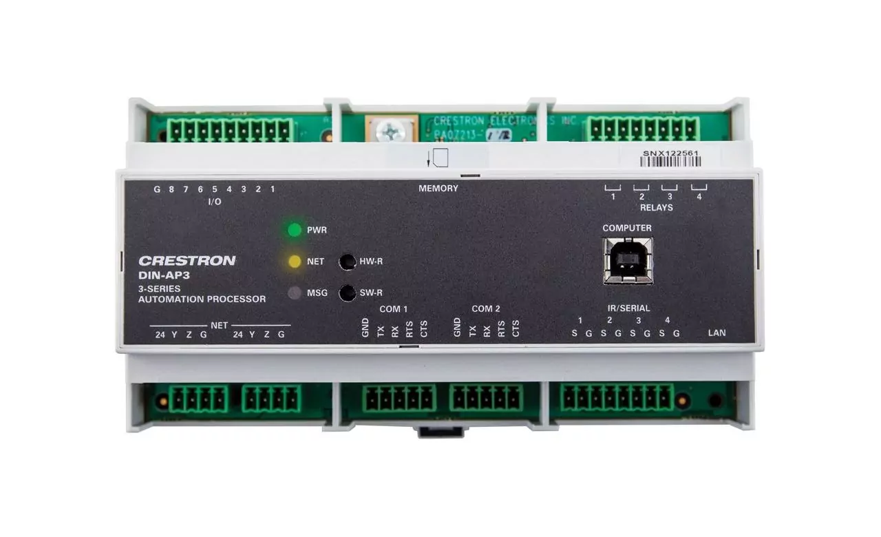 Автоматический процессор Crestron DIN-AP3 - контроллер 3-й серии, монтируемый на направляющих DIN. Объединение монтируемых на DIN-рейке модулей позволяет создать компактную систему управления, легкую в установке и идеально подходящую для проектов с условиями ограниченного пространства.