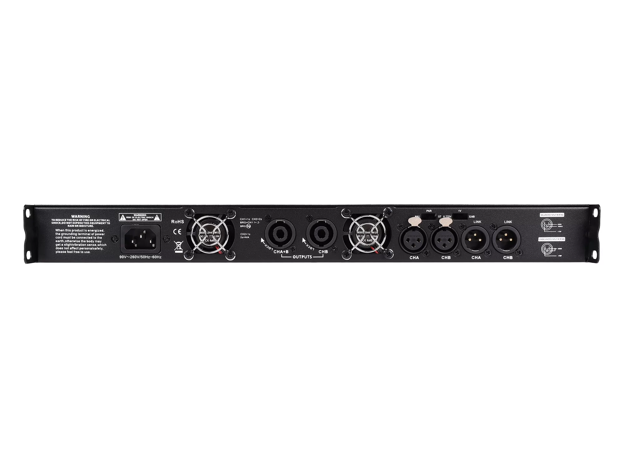 ALS 2500 это двухканальный низкоомный усилитель мощности в компактном 1U корпусе. На передней панели усилителя находятся регуляторы громкости для каждого канала, индикаторы уровня сигнала, перегрузки и защиты.