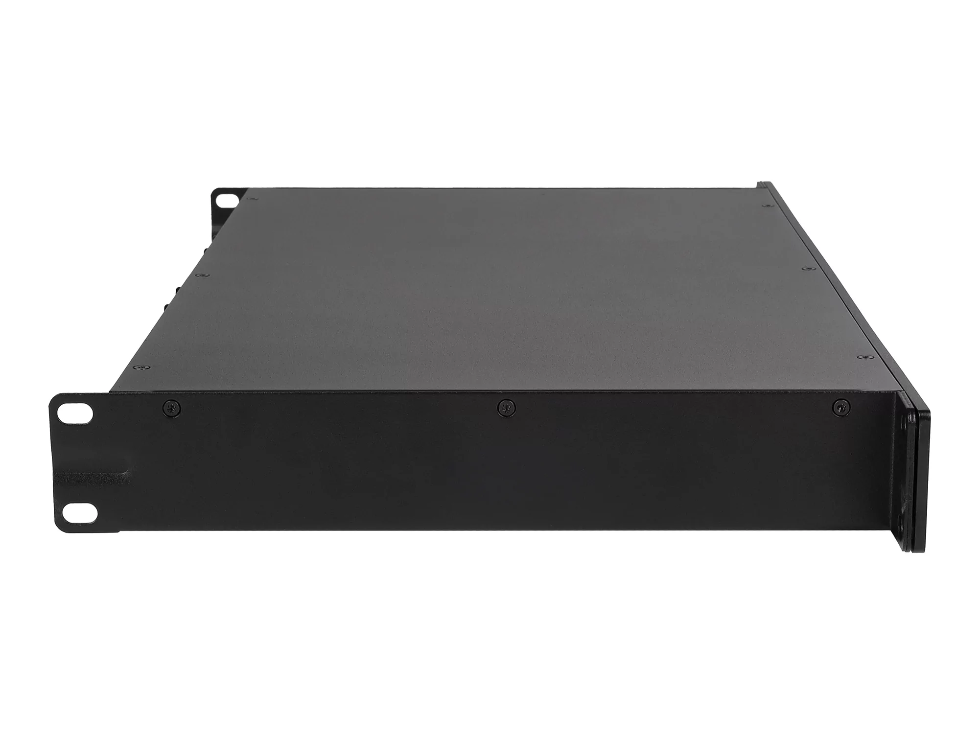 ALS 2800 это двухканальный низкоомный усилитель мощности в компактном 1U корпусе. На передней панели усилителя находятся регуляторы громкости для каждого канала, индикаторы уровня сигнала, перегрузки и защиты.