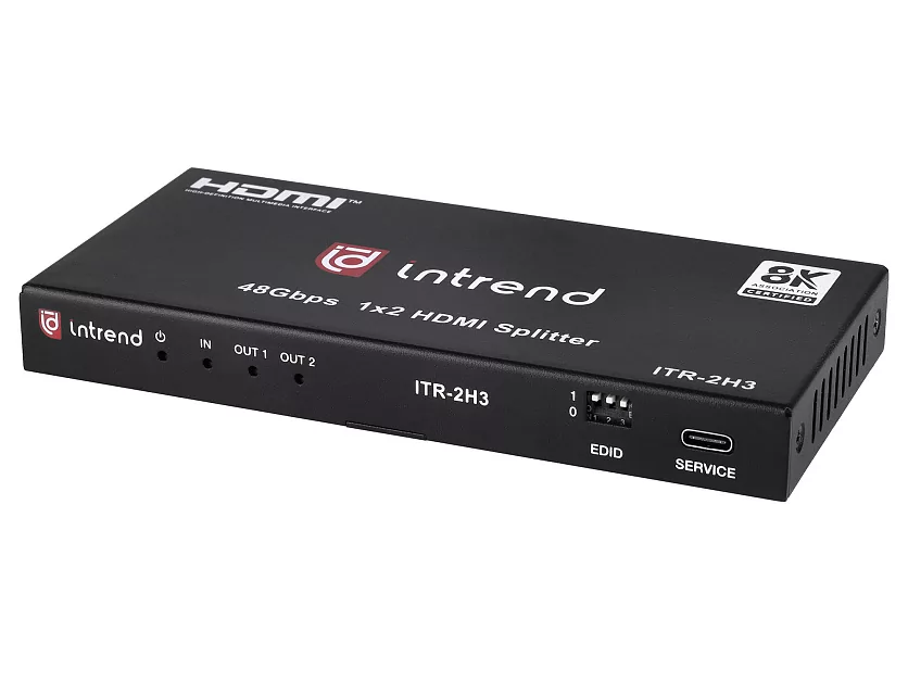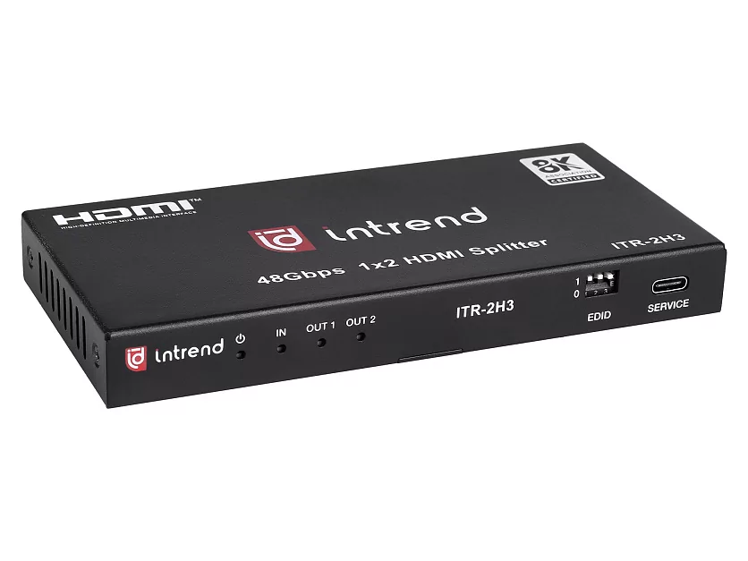 Усилители-распределители типа InTrend ITR-2H3, ITR-4H3, ITR-8H3 получают на входе сигнал HDMI разрешением до 8K и после усиления и обработки выводят его на 2, 4 или 8 выходов HDMI (соответственно).