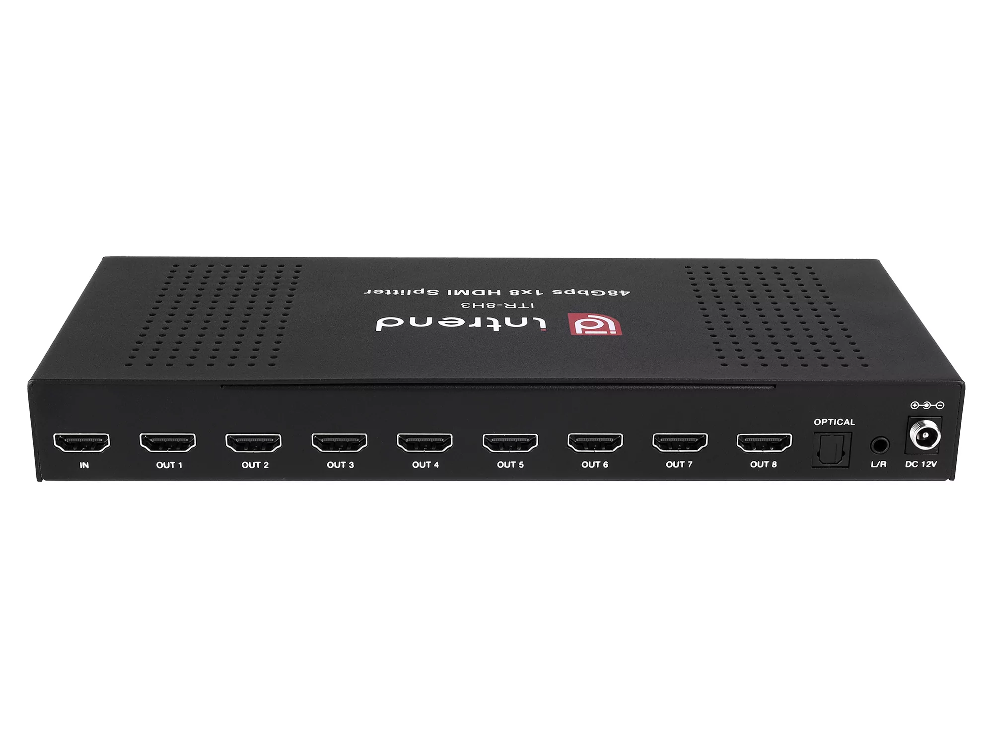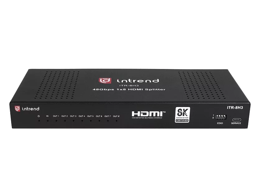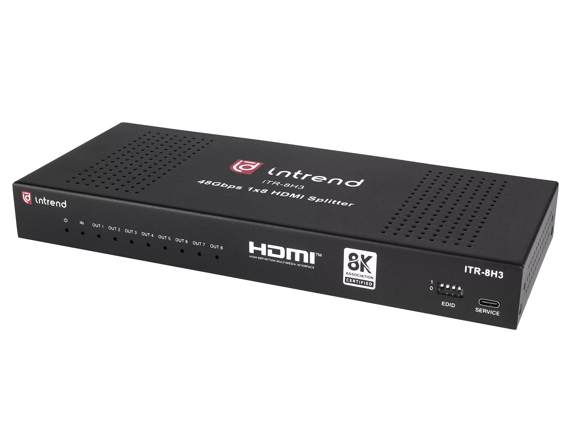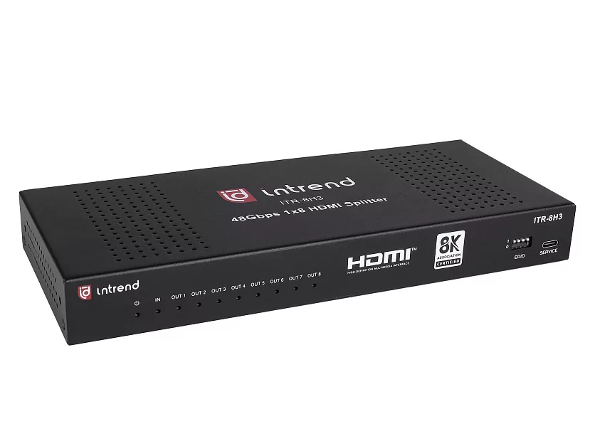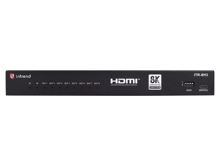 Усилители-распределители типа InTrend ITR-2H3, ITR-4H3, ITR-8H3 получают на входе сигнал HDMI разрешением до 8K и после усиления и обработки выводят его на 2, 4 или 8 выходов HDMI (соответственно).